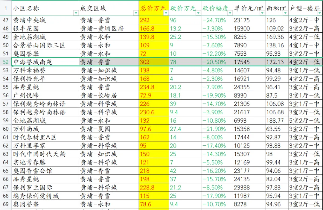 【广州楼市深度观察】黄埔区本次数据共覆盖81套成交房源。
