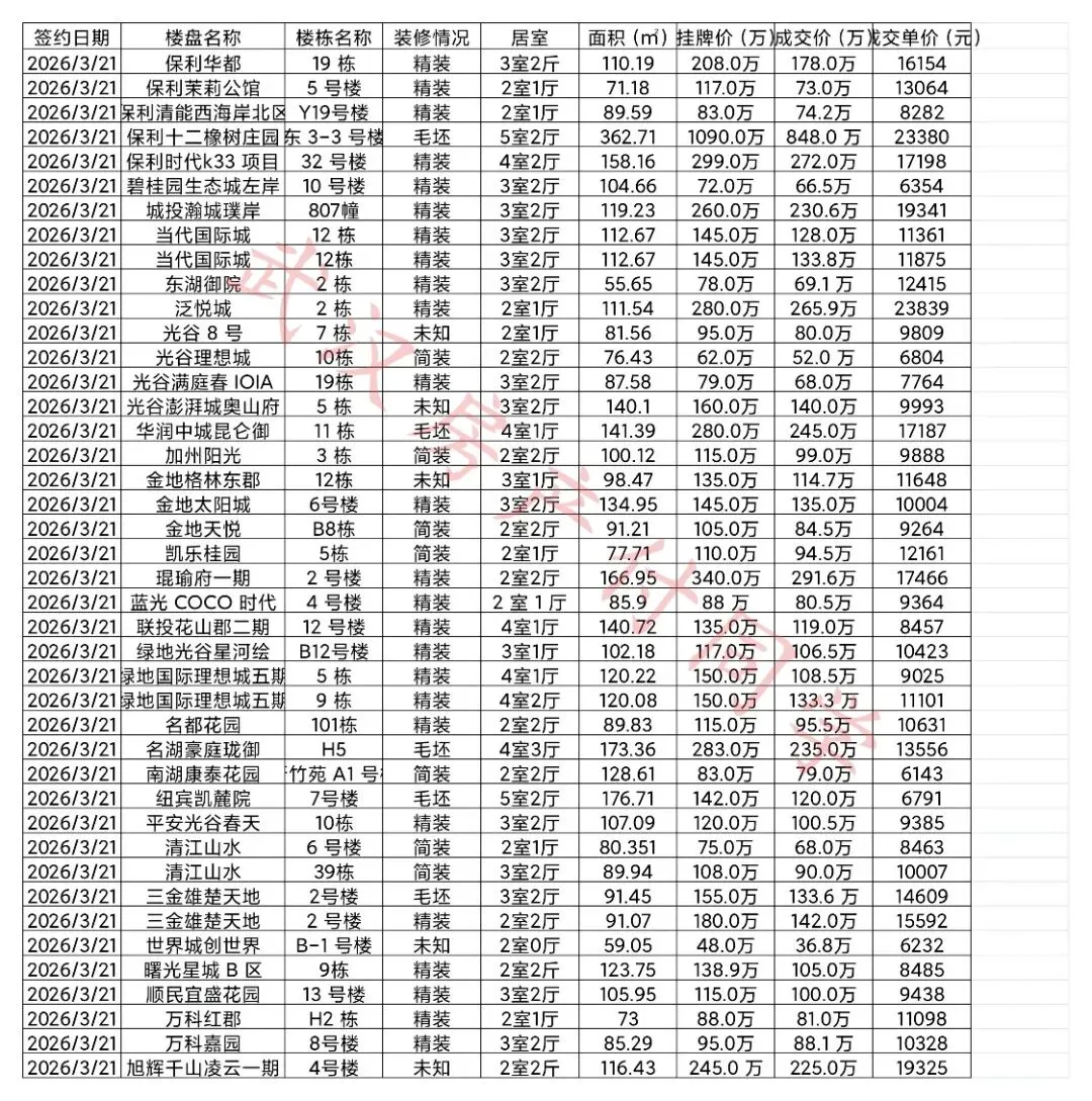 光谷二手房成交记录(2026.3.21)+优质好房