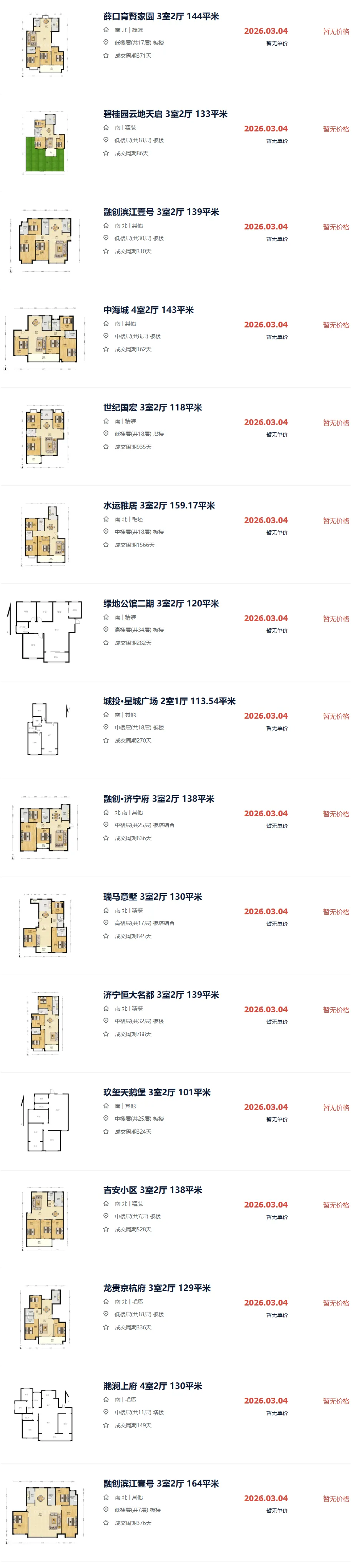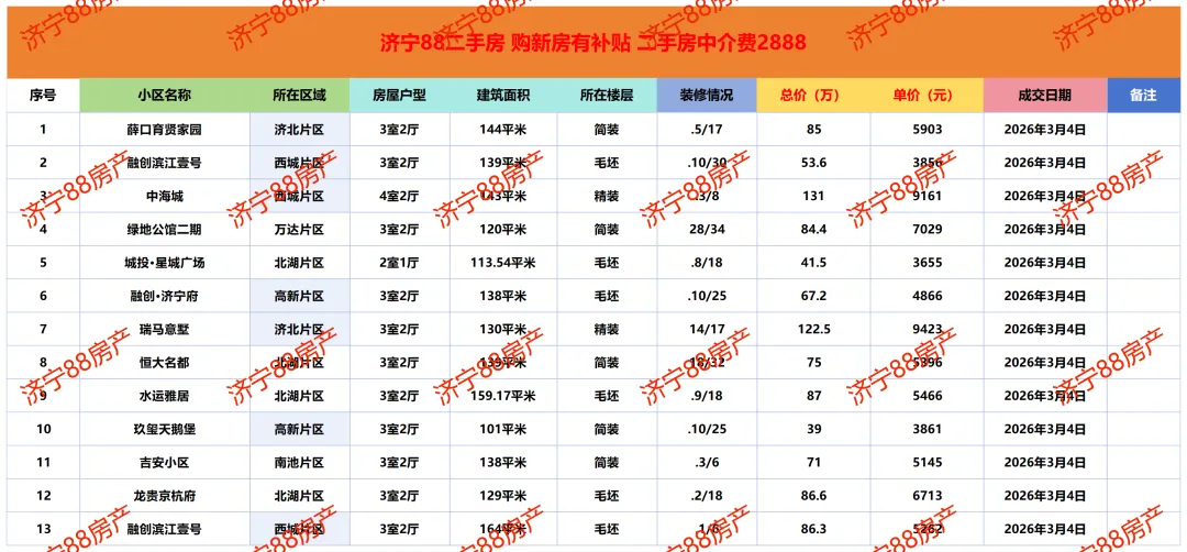济宁二手房成交市场价参考|3月4日