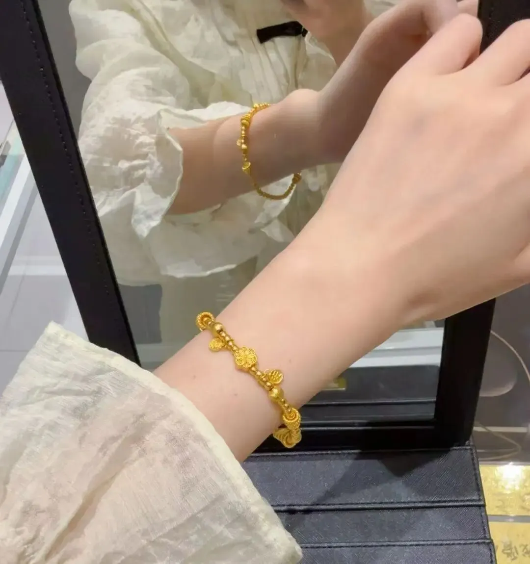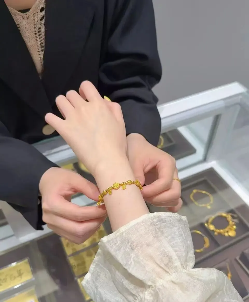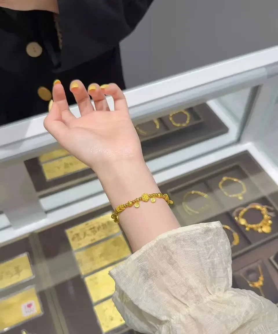 先说我自己戴金的细节吧。我选的是足金的小圆珠链,克重不算轻,摸起来有点沉甸甸的踏实感,配T恤或衬衫都不突兀。我在店里反复试了几圈,手背抬起那一刻,灯下的反光柔和,不晃眼但显气色。朋友看我戴了几次,聚餐时摸了一下说质感好,妈妈则夸造型简洁耐看。我之所以选它,是因为好搭配、日常能佩戴,不用收着吃灰;同时,金子的材质属性让人心里有底,哪怕不天天想“升不升”,戴着就算值到了实处💫。