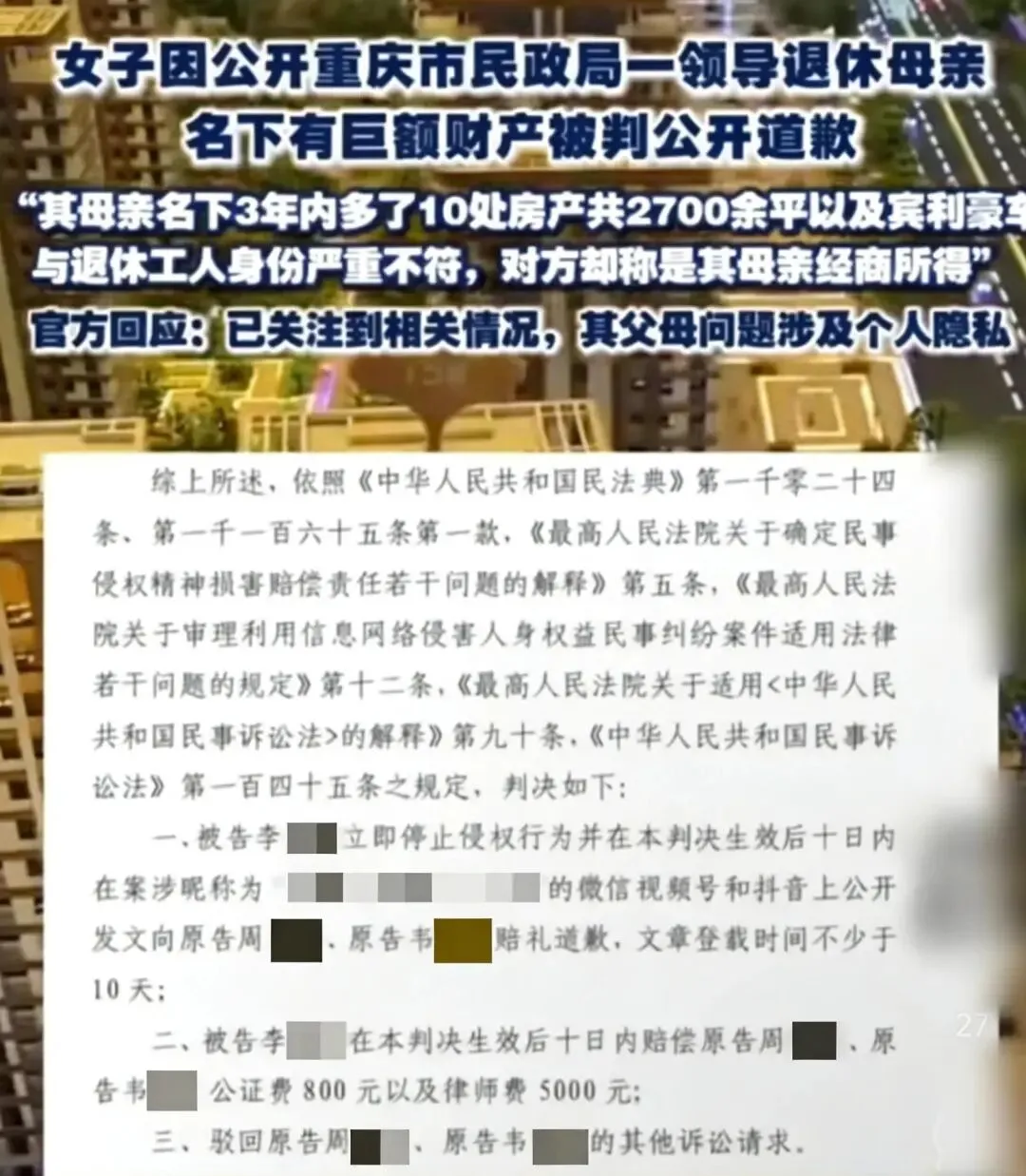 而这起事件最关键、也最让人意外的转折,发生在判决当天。就在李女士被判道歉的同一时间,重庆市民政局正式发布通报,纪检监察部门已针对此事介入调查。一边是司法维护个人名誉,一边是纪检核查权力相关线索,两件事同时出现,让整件事的走向更加清晰。