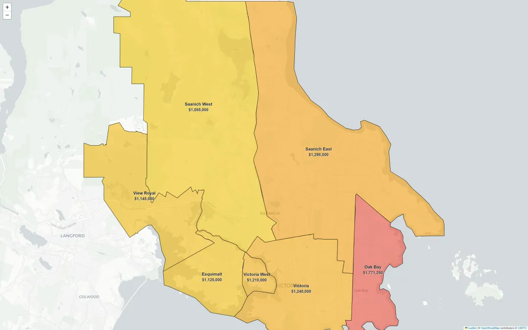 很多初来乍到维多利亚的人,不知道,整个维多利亚是分成核心区,西岸区和北部区的,而核心区则是由5个不同城市组成的,他们有各自独立的市政府,甚至警察局。由于不同时期的发展原因,这些地方的房价是不同的。以下是维多利亚核心区共7个片区的独立屋房价分布图,数据统计区间为过去365天。颜色越红,代表该区域房价越高;颜色越黄,则代表房价相对较低。