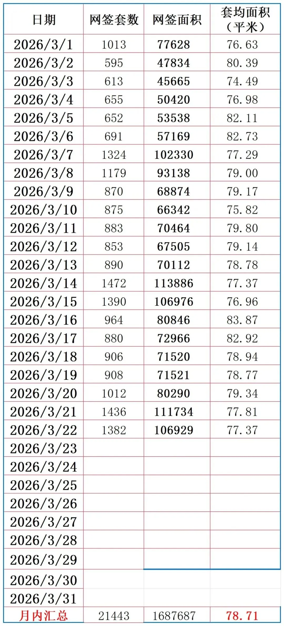 2026年3月22上海二手房网签套数1382