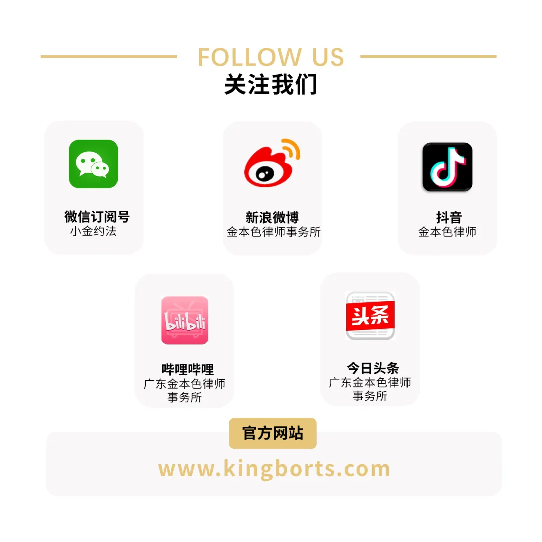 免责声明:本微信文章并不用于任何商业目的,仅为交流探讨之目的,不得视为广东金本色律师事务所律师出具的正式法律意见;部分图文来源于网络,版权归原作者所有,如涉及作品内容、版权和其他问题,请与我所联系,我们将在第一时间删除内容!