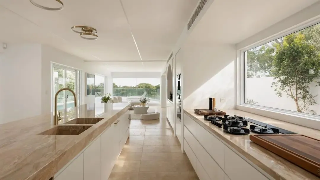 房产内部使用了价值100万澳元的天然石材,厨房则配备了价值20万澳元的 Gaggenau 品牌电器和6米长的大理石岛台。