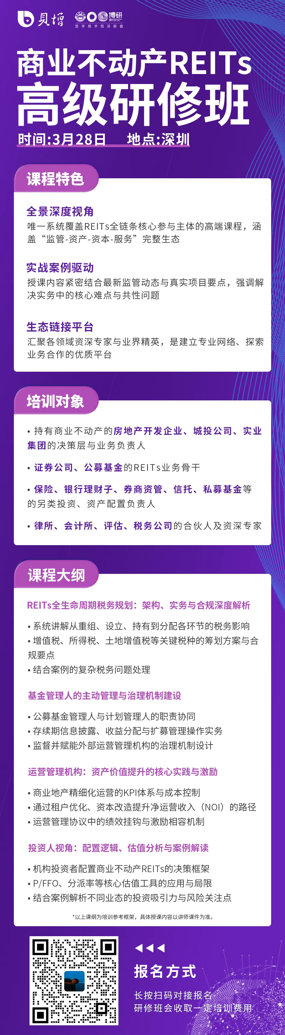 为此,我们举办了【商业不动产 REITs 高级研修班】,将于3月28日在深圳正式开营。(注:有上海场,拟在16-17号开课)