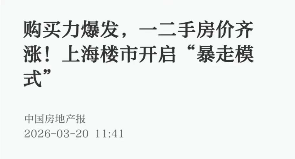 2026年3月16日,周一,上海二手房网签964套,刷新了2021年之后的最高周一纪录!而且3月16日还是一个雨天,下雨都挡不住上海的老百姓买房!