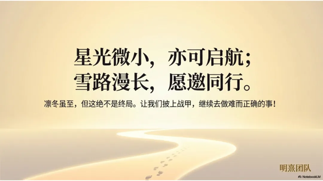 我愿意做那颗微小的星星。虽然雪路漫长,但我相信,只要我们同行,这条路就会越走越稳;只要我们抱团取暖,我们终将在这个时代里,走得越来越远。谢谢大家!