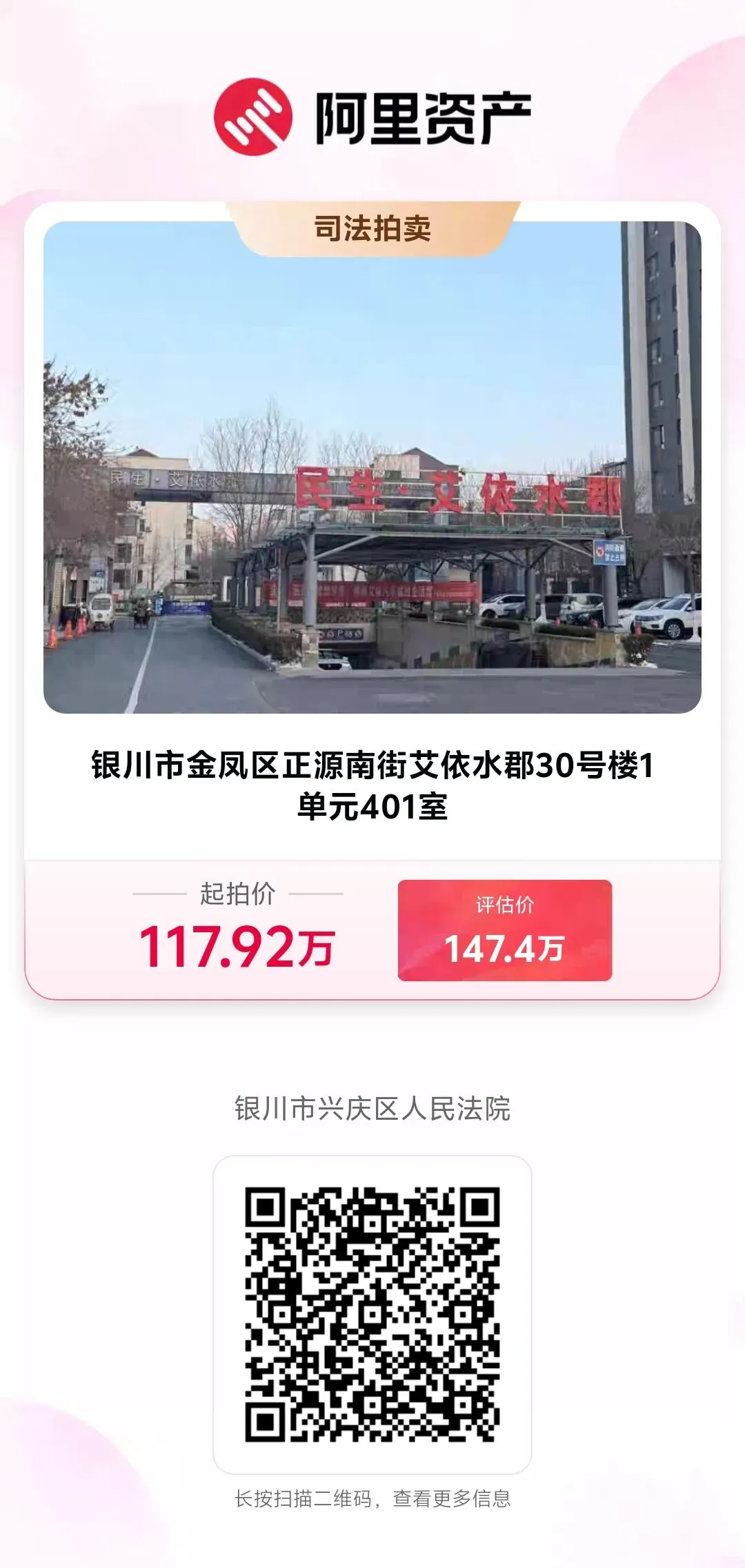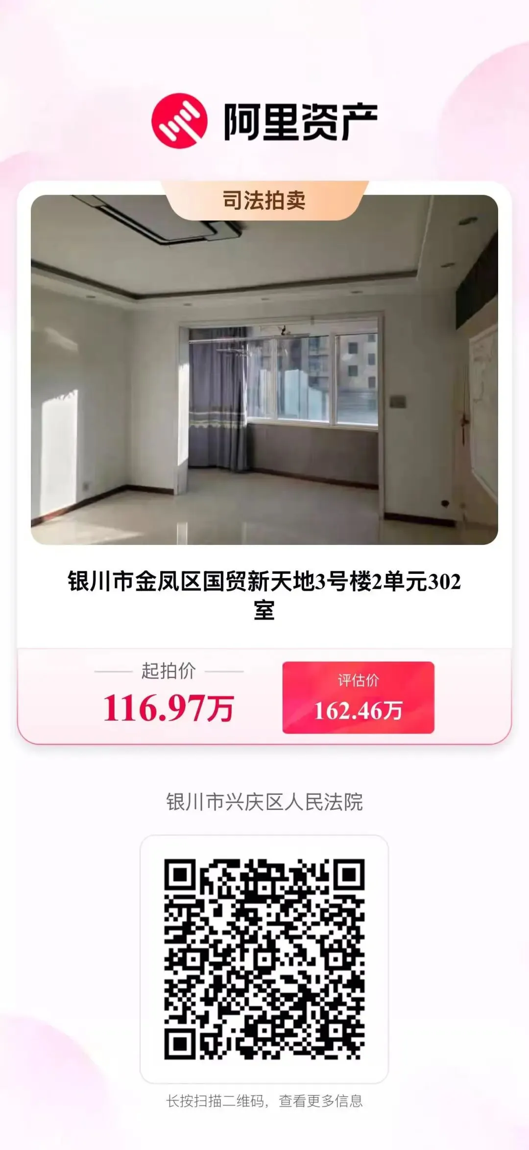宁夏回族自治区银川市兴庆区人民法院将于近日对以下标的在淘宝网资产竞价网络平台上(网址:http://zc-paimai.taobao.com)依法进行公开拍卖: