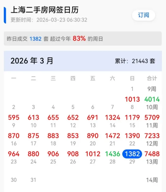 1、二手房彻底开挂!爆卖7488套!一周一个新纪录,根本停不下来!剑指单月3万套!就在3月第三周,上海二手房网签直接干到7488套,硬生生超过了上上周7233套的纪录,再一次把热度拉满!3月21-22日,网签2818套!直接刷新5年来的最高周末纪录!两天干出别的城市一周的量!3月16-20日,工作日五天,网签4670套!又是5年来的工作日新纪录!3月16-22日,单周网签7488套!刷新2021年以来最高单周成交纪录!