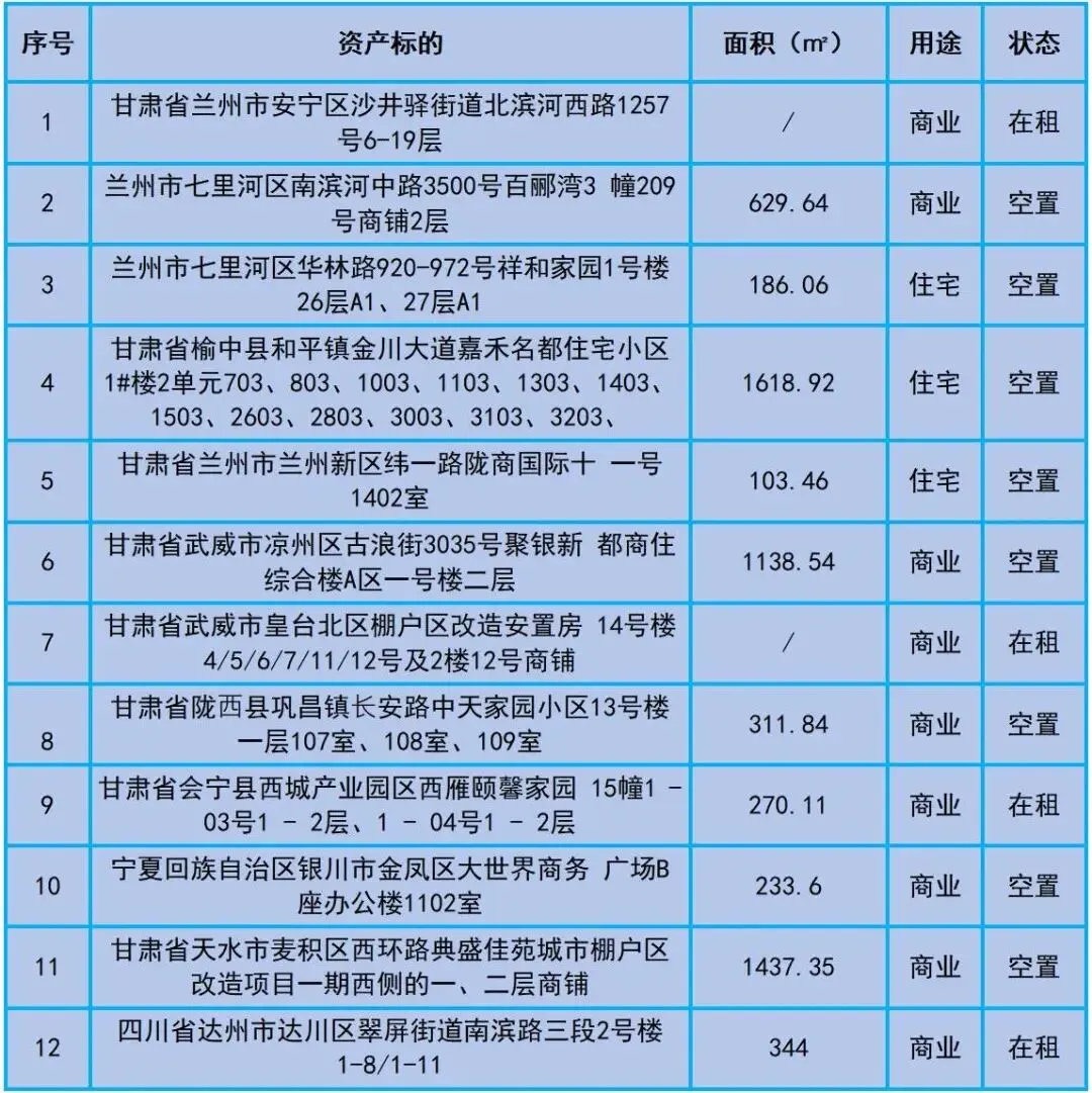【房产租赁】甘肃建投资产经营有限公司12宗商铺及住宅资产租赁(招商推介)公告
