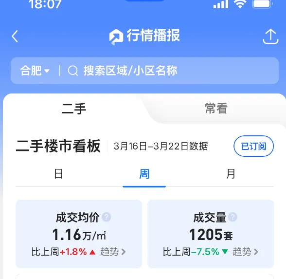 上周,贝壳二手房成交均价1.16万/平,环比上涨1.8%。