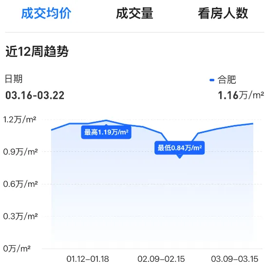 成交均价从2月23日-3月1日的1.07万/平,上涨至上周的1.16万/平。