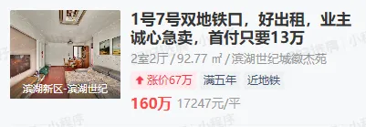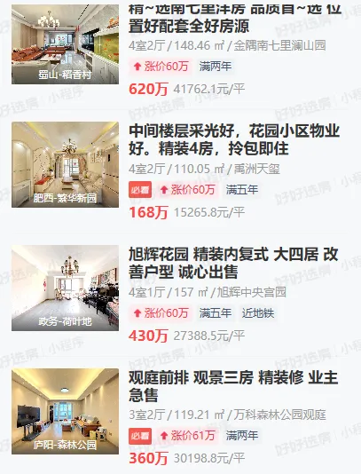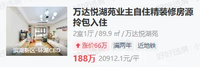滨湖区的滨湖世纪城、万达悦湖苑出现房源涨价超60万。