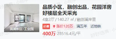 甚至于包河区的融创澜岸里,一套140㎡房源,更是直接涨价120万,把单价抬到了2.8万/㎡。