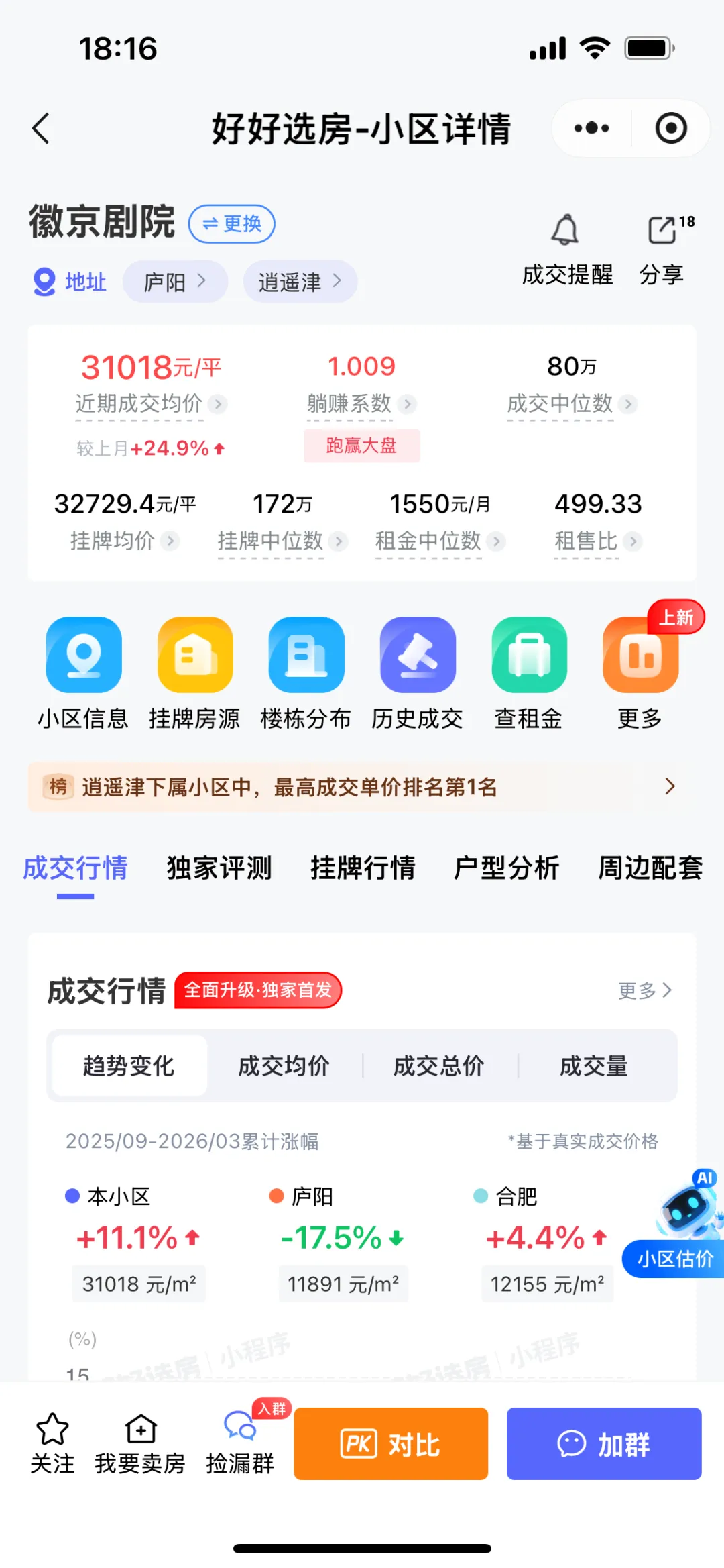 南门小学+第42中学(本部)学区的徽京剧团宿舍,成交单价为31018元/㎡。