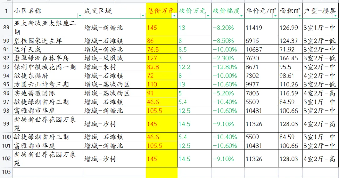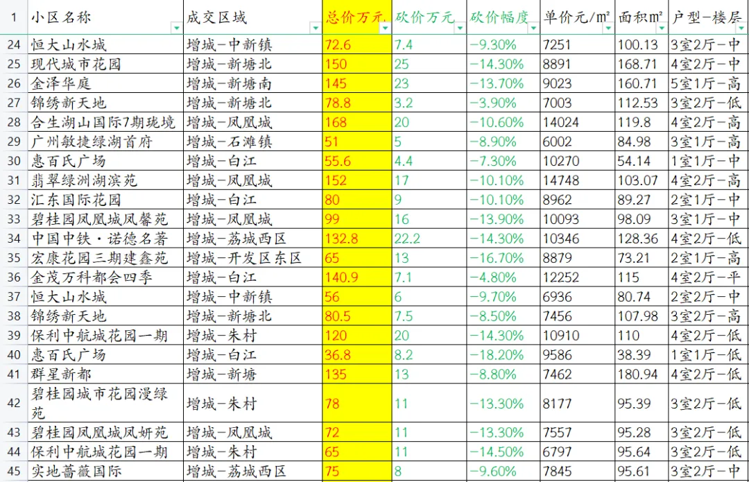 【广州楼市深度观察】增城本次数据共覆盖101套成交房源。