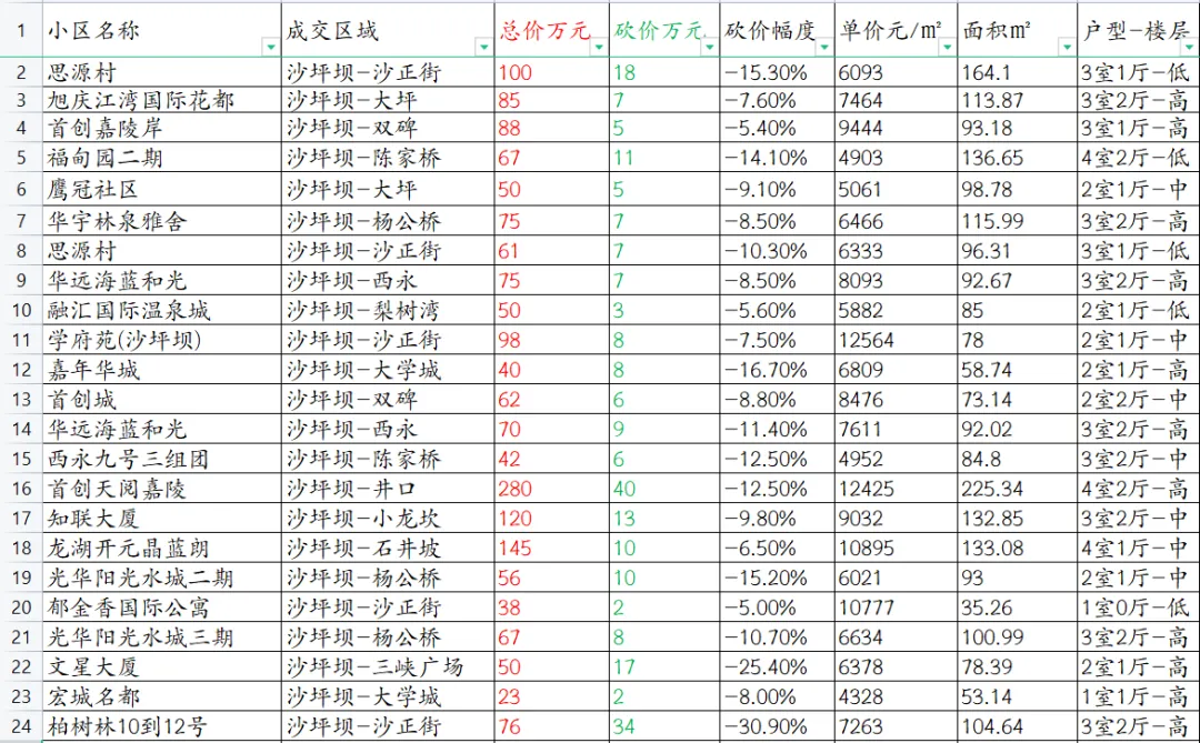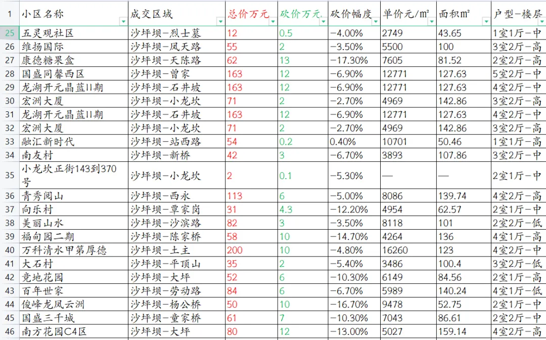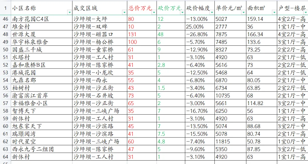 【重庆楼市深度观察】沙坪坝区本次统计共63套房源成交信息。