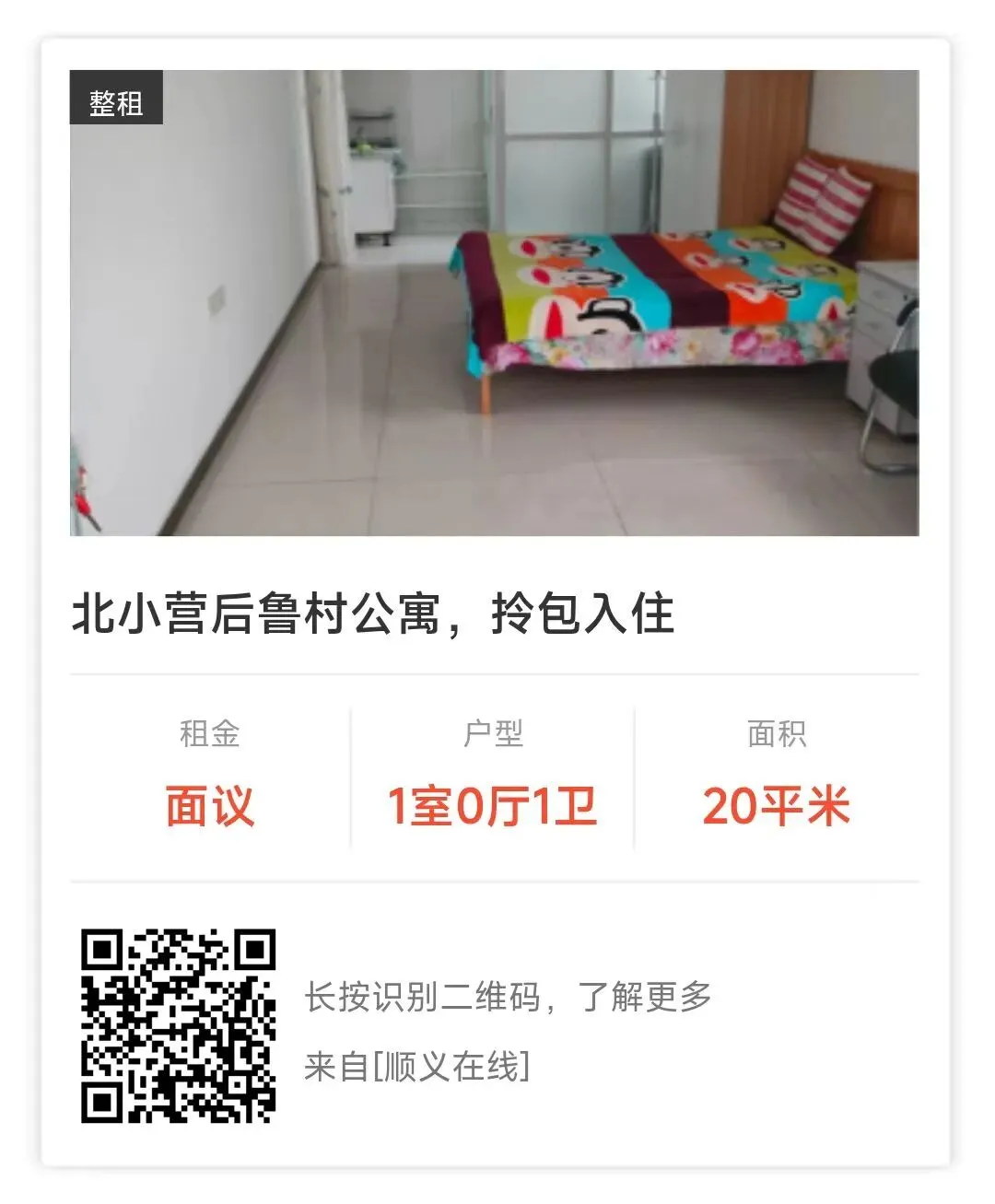 (发布信息有三种方式:顺义在线APP/顺义同城掌圈/提交本页面下方“阅读原文”)介绍:3层,精装修,隔断两居,婚房,首次出租,家电齐全,随时入住电话:15201609598(打电话时说“顺义在线”看到的)温馨提示:信息来源于顺义在线房产板块,请有需求者自行联系出售人士核实,涉及金钱交易请提高警惕,谨防受骗9.9元/2节课,抢顺义岐飒骏逸武道课(跆拳道、散打二选一),增强综合体质,发泄内在压力,提高防身自卫能力!【电子卡】2026年京津冀旅游一卡通精品卡/普通卡开售,含顺义亚瑟王国、考拉大冒险、虎乐园以及古北水镇、慕田峪、中央电视塔、富国海底世界等各种亲子乐园、博物馆、公园、温泉等数百景区持卡免费、优惠玩19.9元/2节,购励新洪武体育体验课程,篮球、体能2选1 ,手握篮球让快乐在指尖传递,奔跑追逐让欢乐在脚尖释放,奋力灌篮,加强锻炼,风风火火把健康收获!!!