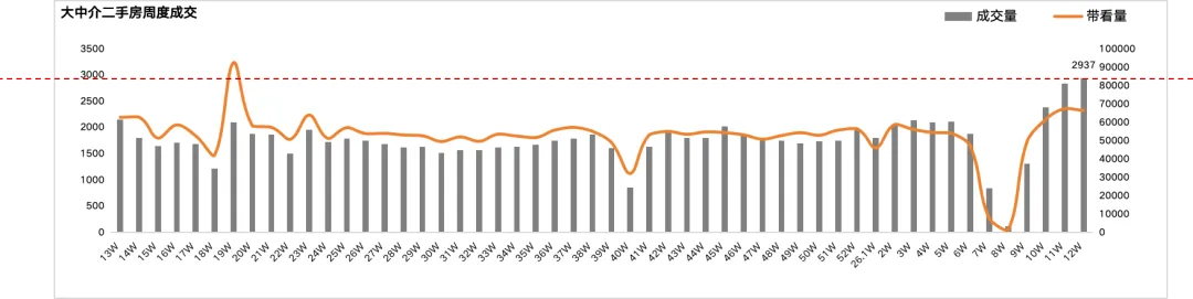 大中介成交2937套,高于近3周2719套的均值,创下自2024年10月以来新高;