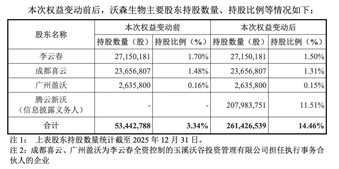 本次发行完成后,腾云新沃将直接持有沃森生物11.51%的股份,与其一致行动人合计持股比例将达到14.46%,正式成为公司新任控股股东,而腾云新沃的实际控制人、世纪金源集团总裁黄涛,将成为沃森生物上市以来的首任实际控制人。