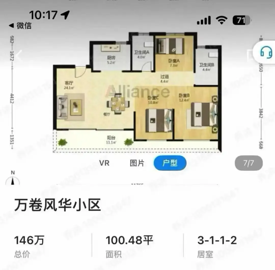 12.万卷风华 100.48平 148万,带车位,毛坯,322户型