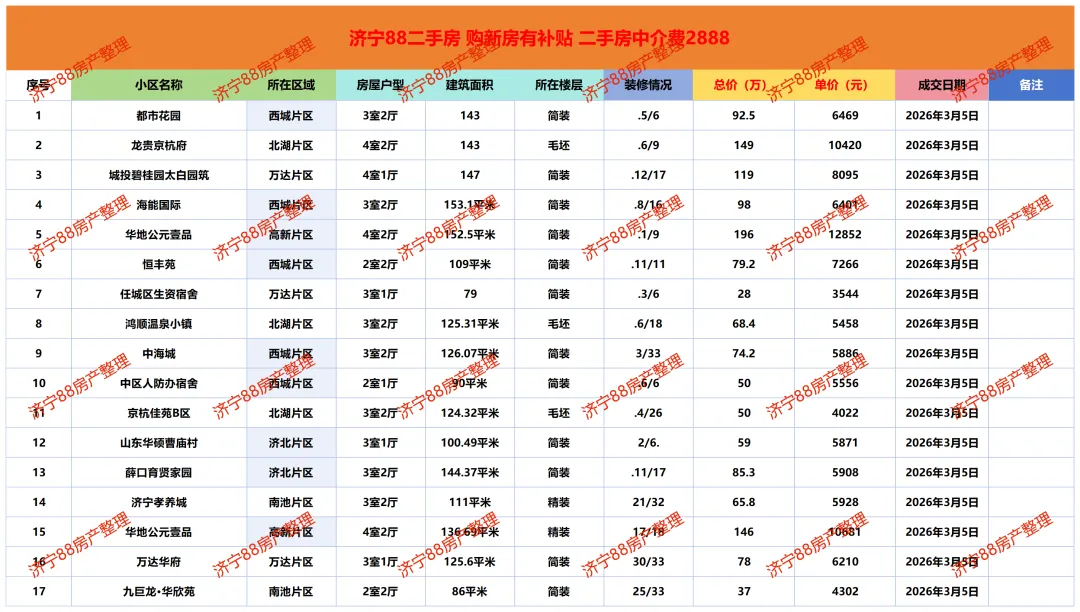>济宁二手房成交市场价参考|3月5日