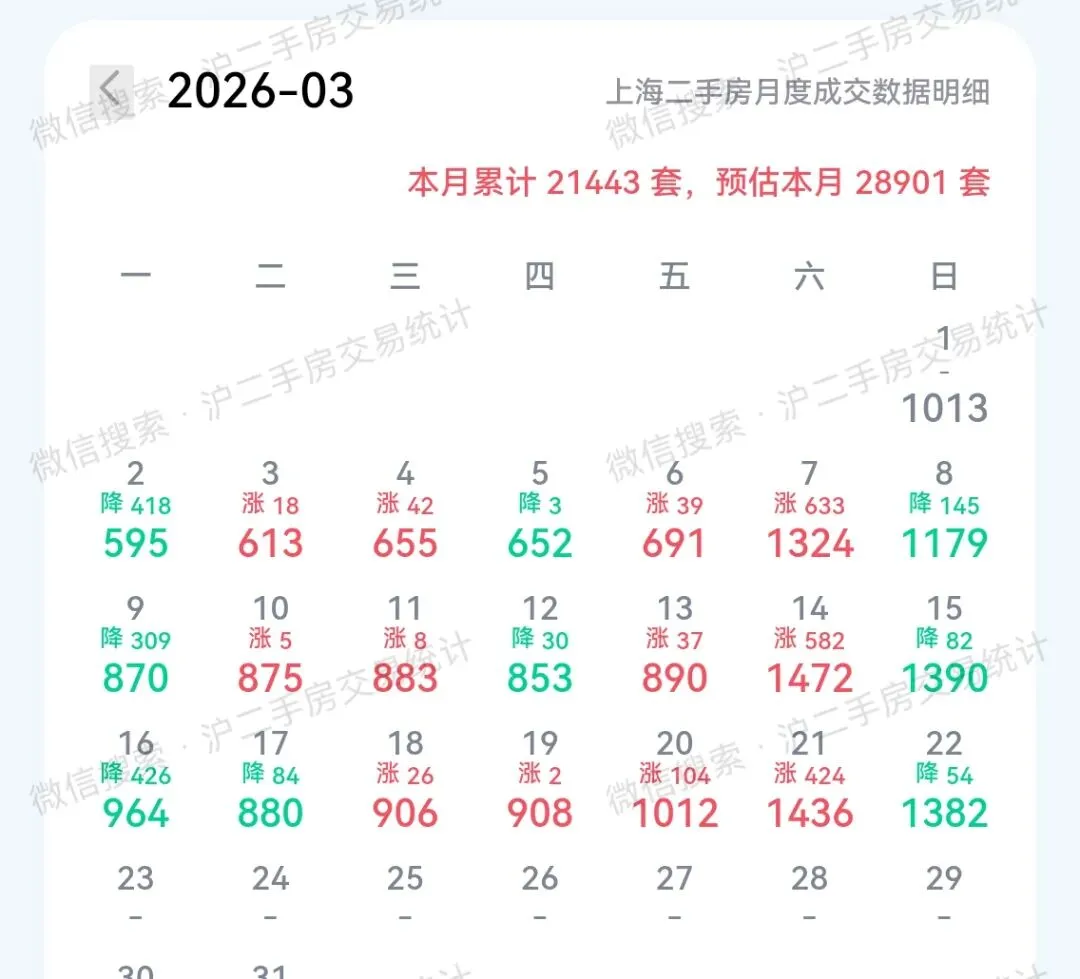 3月1日-15日,上海二手房上半月已成交13955套,日均成交930套,按照当前成交节奏,3月全月成交量有望突破3万套,将创下近五年最强楼市小阳春;