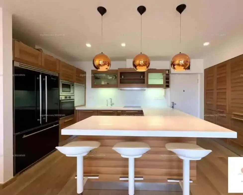 厨房安装了高品质、耐用的 DuPont Corian 定制橱柜,并配备完整电器: