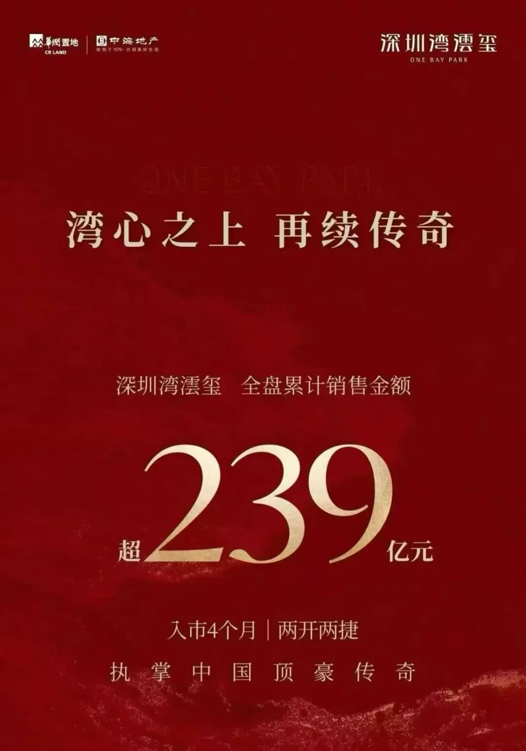 最出圈的当属深圳湾澐玺,周日加推即热销,备案均价约17.65万/平,全盘累计成交总金额直接突破239亿元。