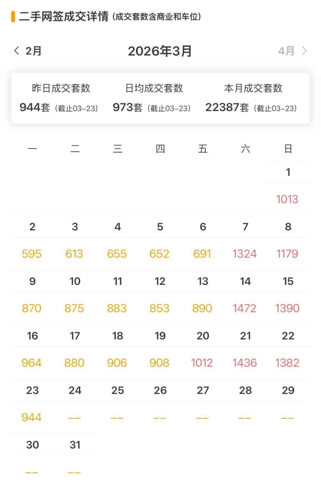 上海二手房最新成交量:昨日(3月23日)网签944套(含住宅、商业、车位等)。