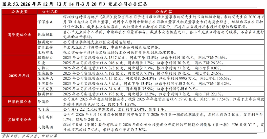 本文来自中银证券研究部于2026年3月23日发布的报告《新房成交同比由正转负,二手房成交同比降幅收窄;上海商业用房购房最低首付比例降至30%——房地产行业第12周周报(2026年3月14日-2026年3月20日)》。欲了解详细全文内容,请阅读报告原文。夏亦丰S1300521070005