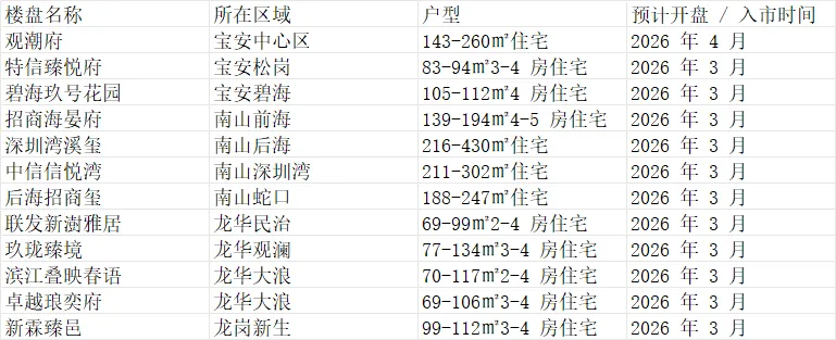 以下为3-4月份即将入市楼盘: