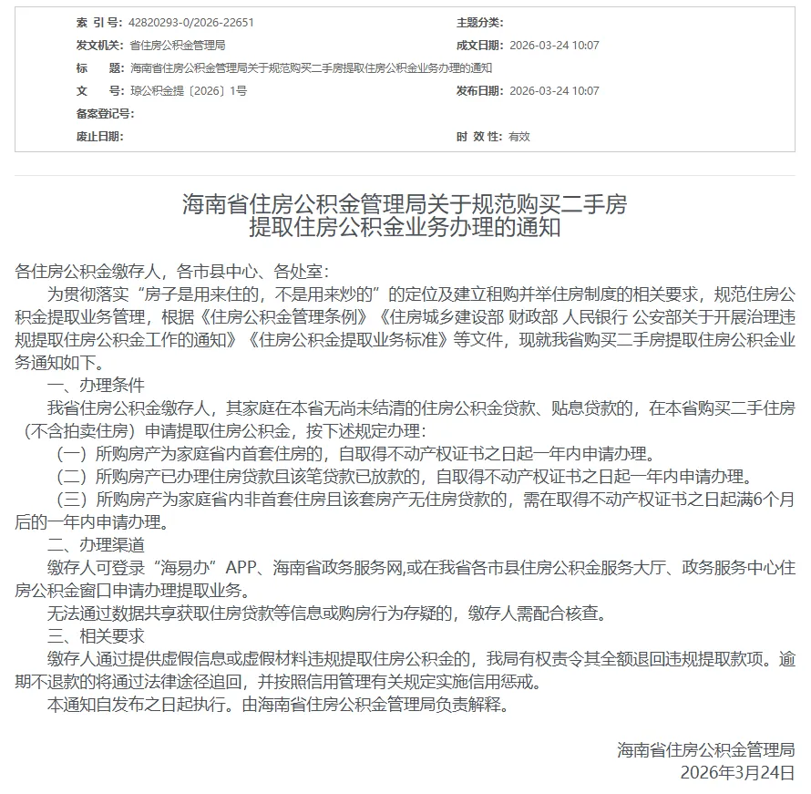 这就是新规最核心的变化!如果你买的二手房,不是你们家在海南的首套房,而且是全款买的、没办任何贷款,那就要等一等了——必须在拿到房产证满6个月之后,才能申请提取,而且要在满6个月后的一年内办完。