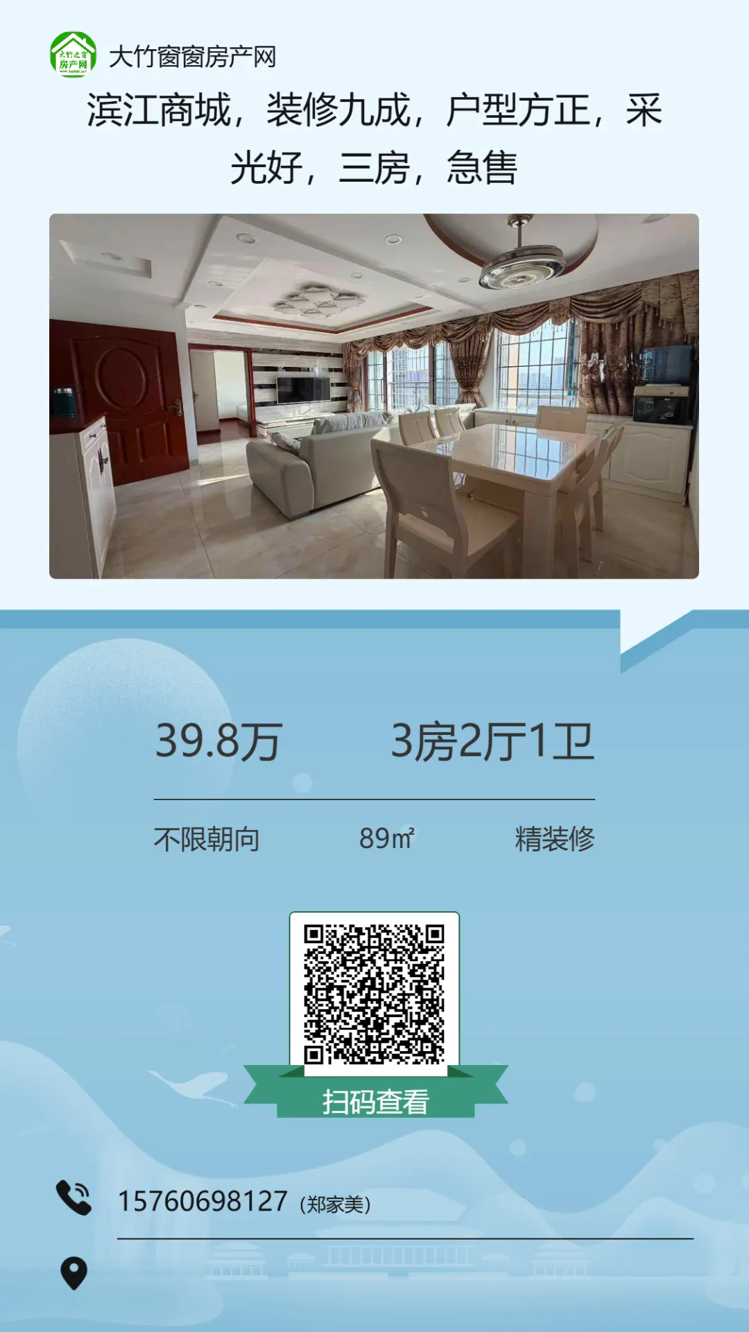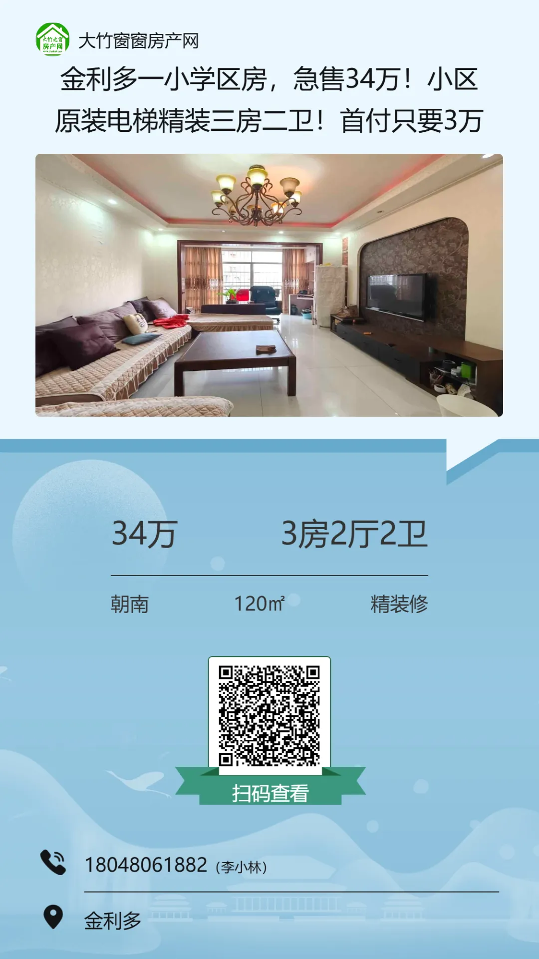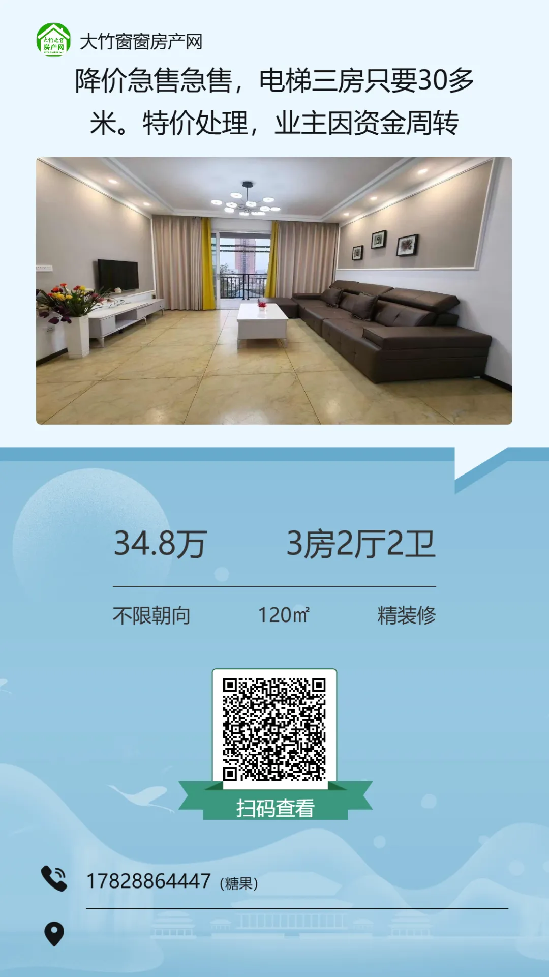 >【大竹房产】可做0首付的中心区精装电梯三房