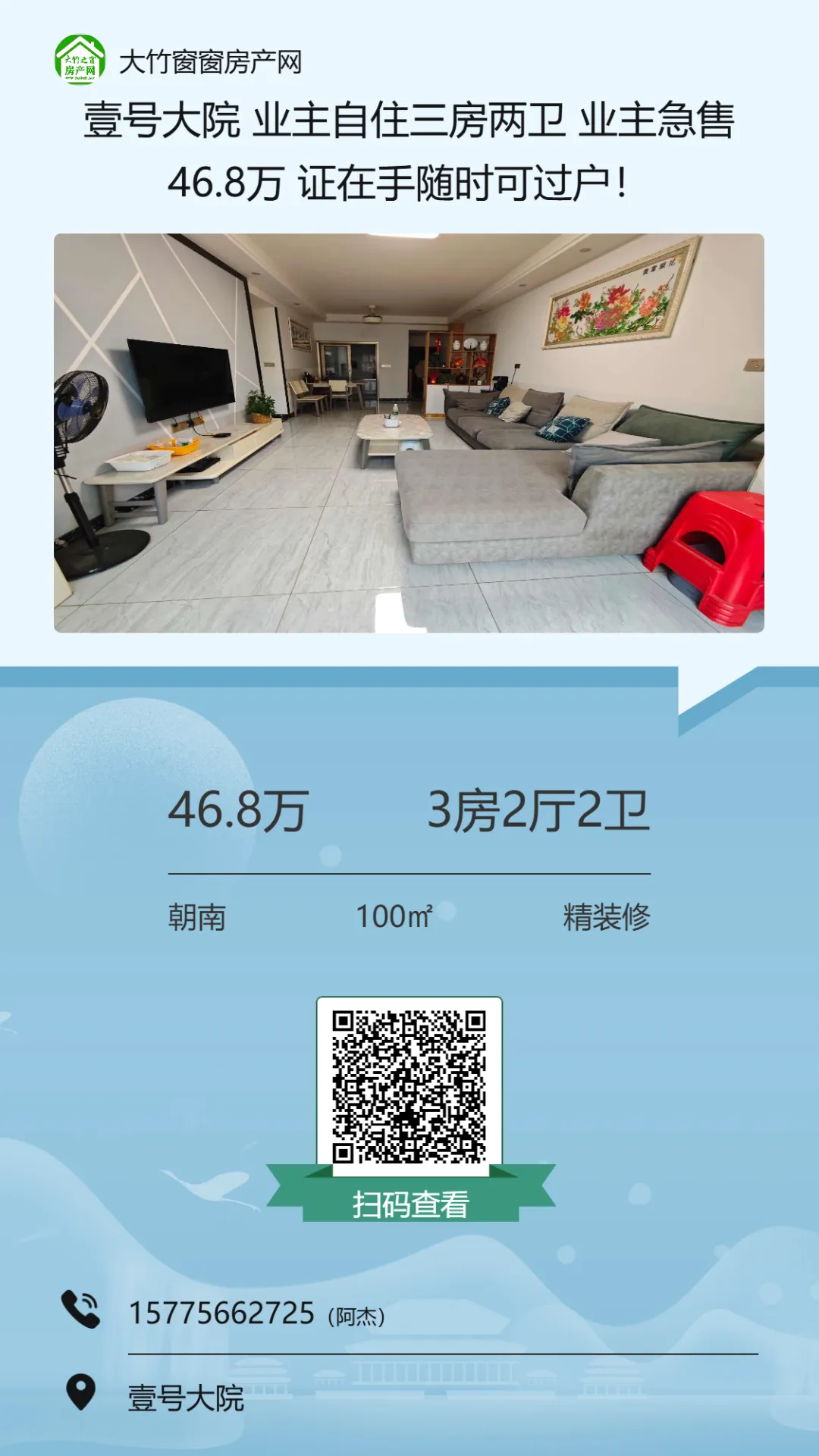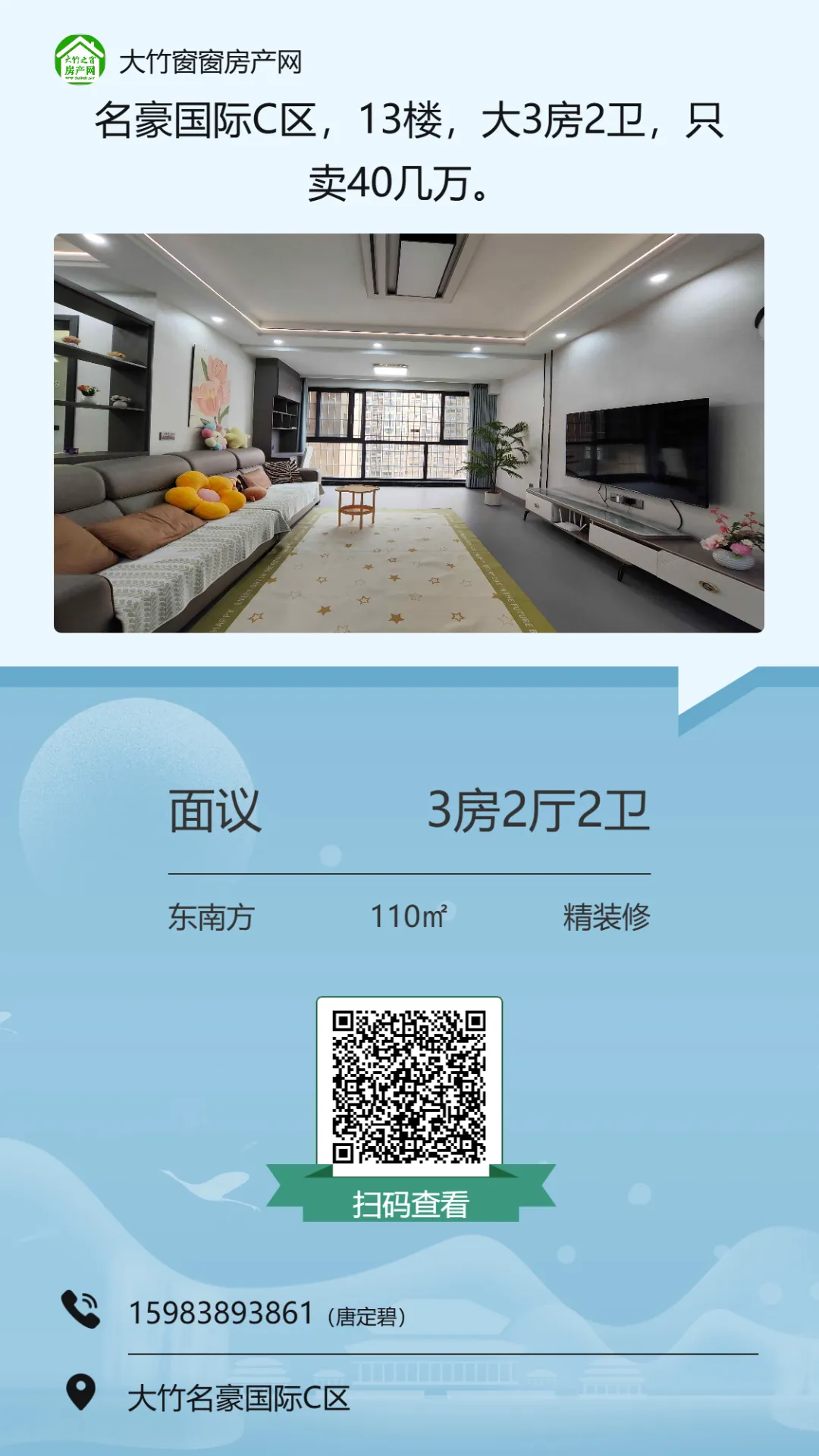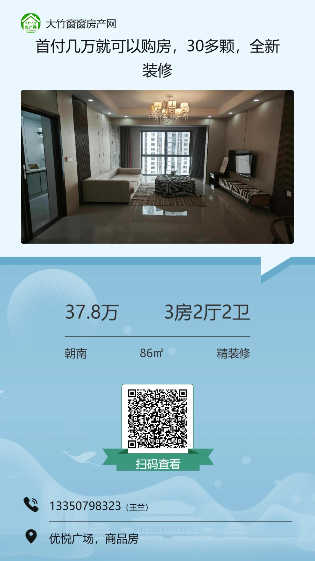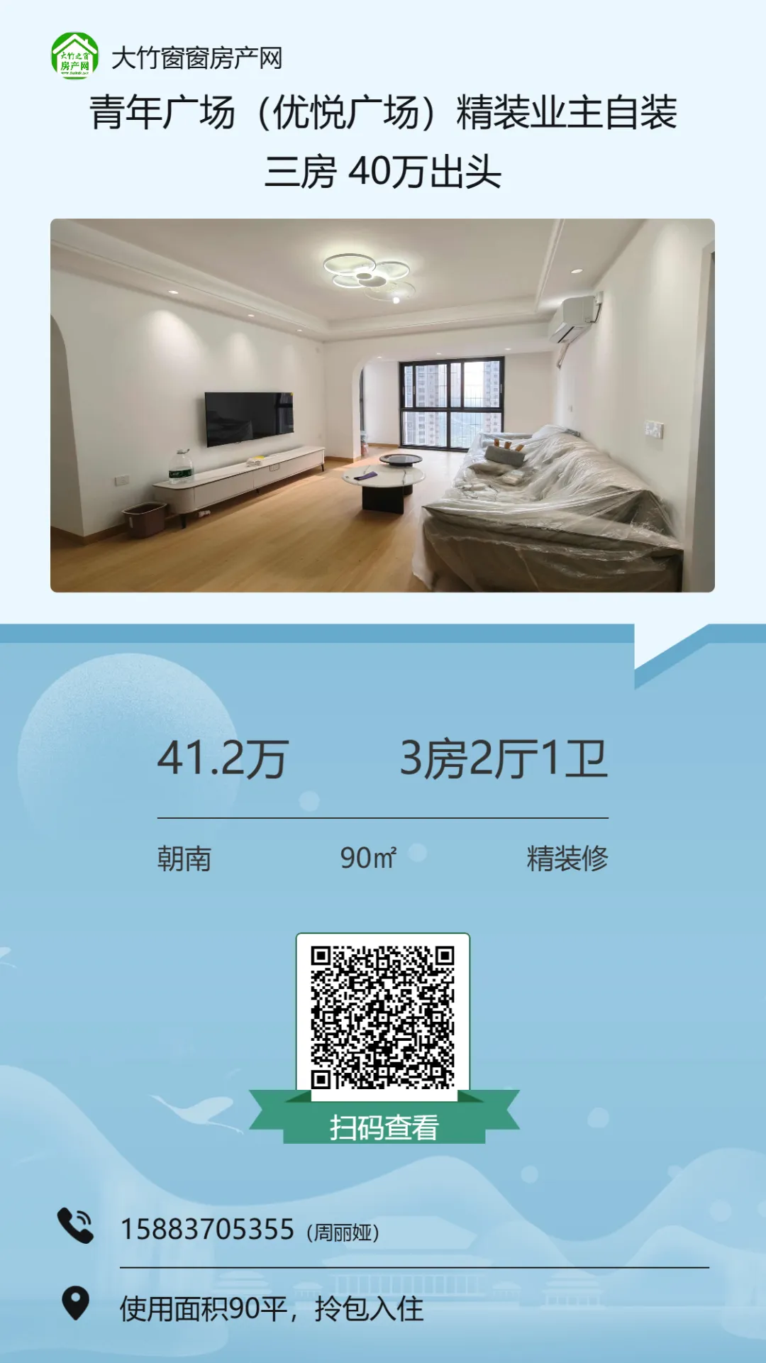 >【大竹房产】可做0首付的中心区精装电梯三房