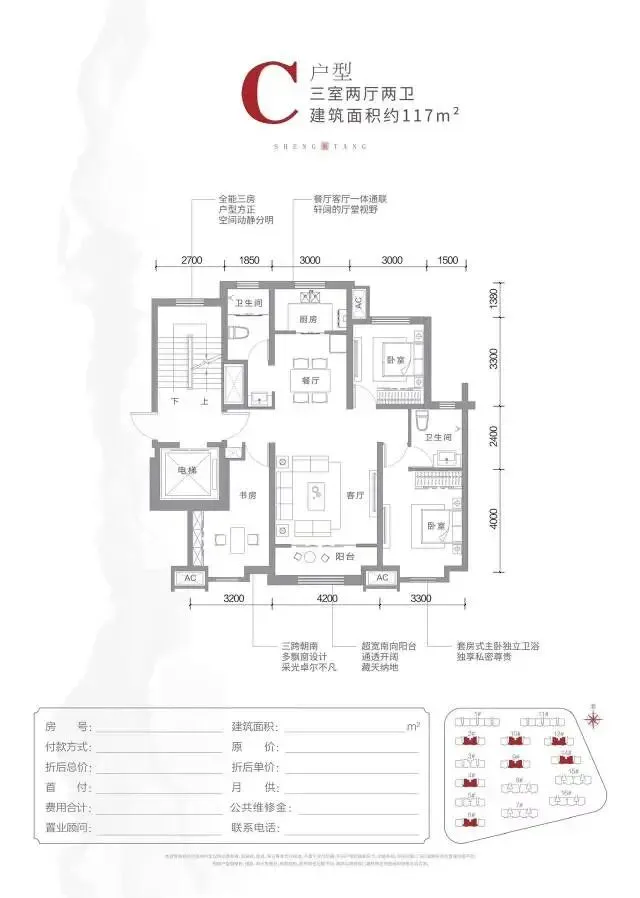 水山澜书院三室两卫126平,85万可议中间楼层,中间位置