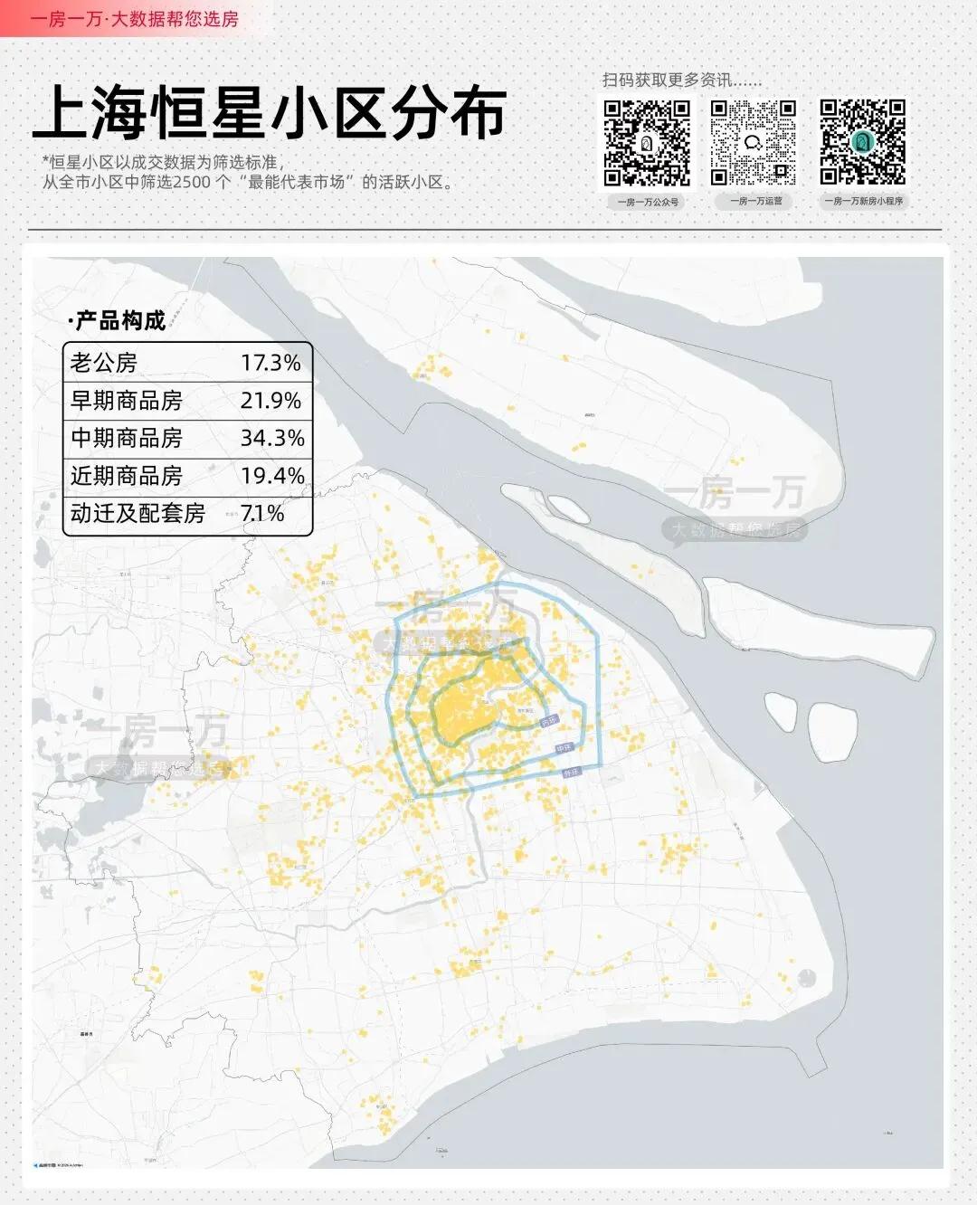 它们按住宅类型、环线、板块被均衡打散,分布于全市。