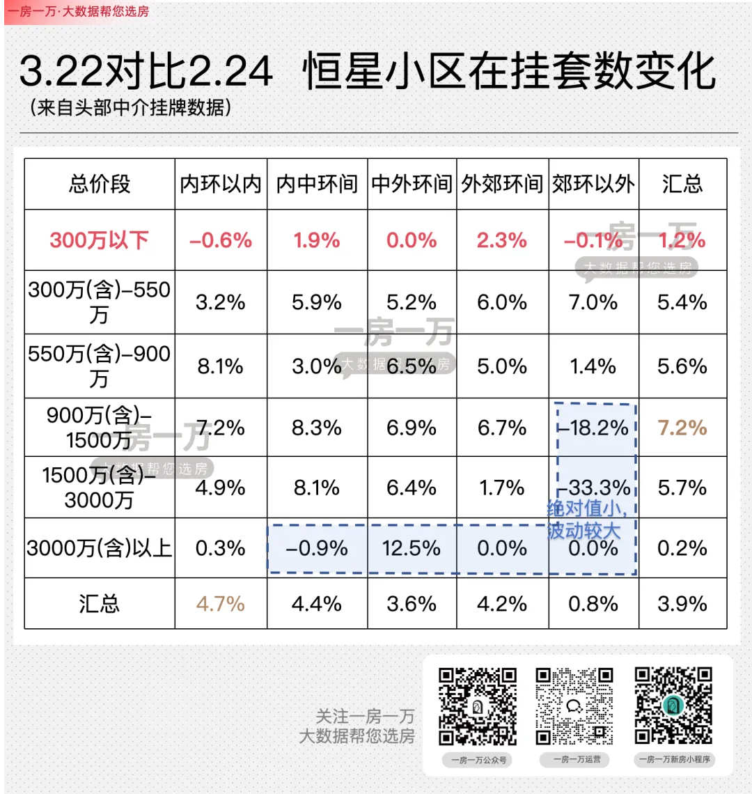 3.22当周,基价出现上涨的恒星小区已达1235个,占比约50%。