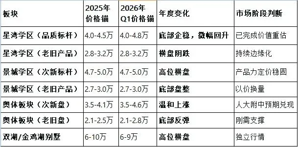 · 2025年星湾学区经历了深度回调(较2022年高点下跌40%-50%),2026年Q1已进入底部企稳阶段。