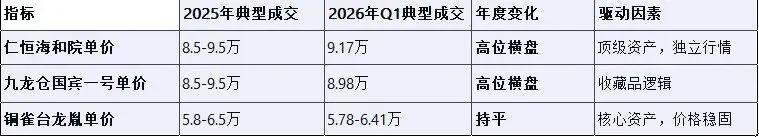 · 2026年Q1:市场完成价值重估,稀缺资源(湖景、双学位)价格企稳回升,产品代际差成为第一定价因子,各网格内部“新旧分化”持续加剧。