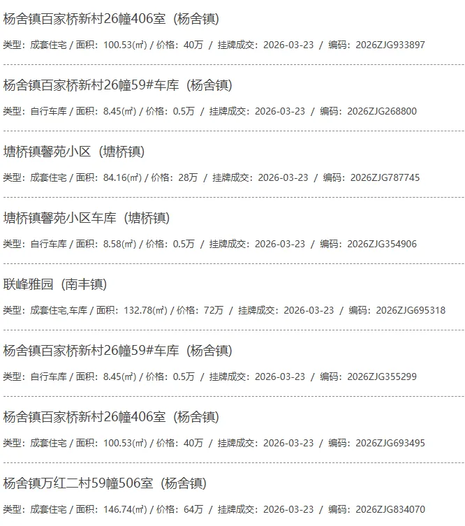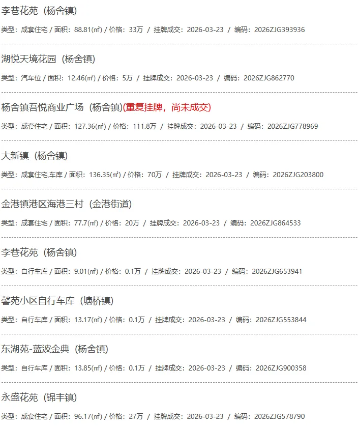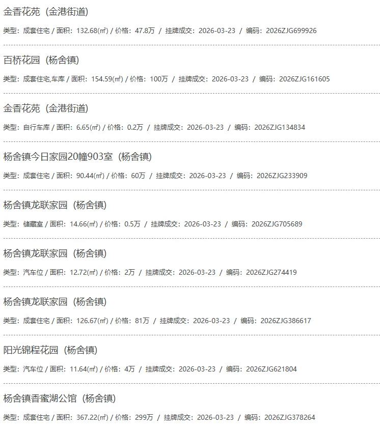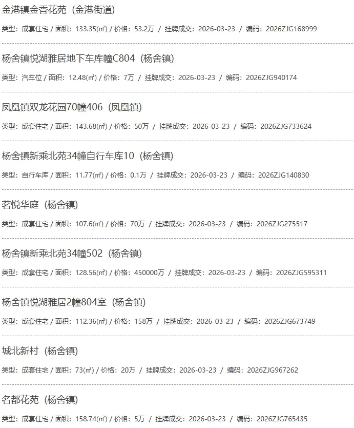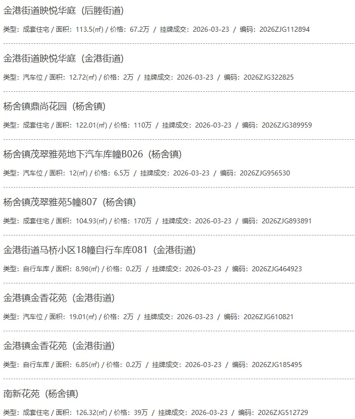 根据张家港房产网(www.zjgzf.cn)整理,(2026-03-23至2026-03-23)总共74套二手房网签挂牌成交(含自行车库及汽车库),数据根据住建局官方网签平台整理,并已同步至各对应小区的成交明细,特别提醒:此处数据及各小区成交数据中凡标注(来自网签挂牌)的,均是根据政府网签挂牌系统整理,价格可能不准,请谨慎采信;并仅作为您买房卖房的参考而非决定依据。以下为数据明细:
