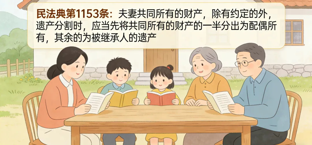这是本案最核心的法律原则,也是很多人容易混淆的误区。根据《民法典》第1153条规定:夫妻共同所有的财产,除有约定外,遗产分割时,应当先将共同所有的一半分出为配偶所有,其余的为被继承人的遗产。