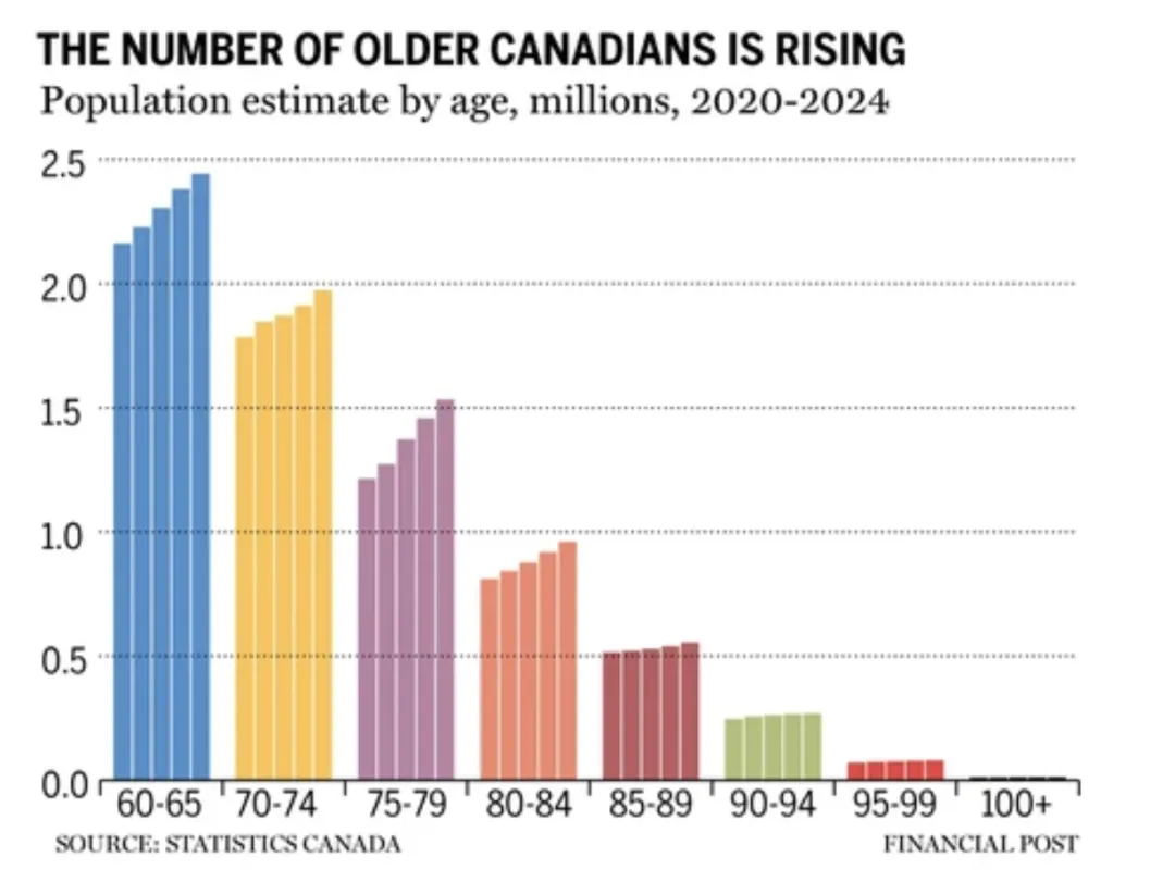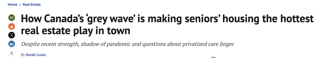 与此同时,加拿大的老龄化在加剧。高纬环球 (Cushman& Wakefield)预计,未来10年加拿大75岁及以上的老年人口将增长超过45%,达到约530万人,极大推动老年住房的需求。