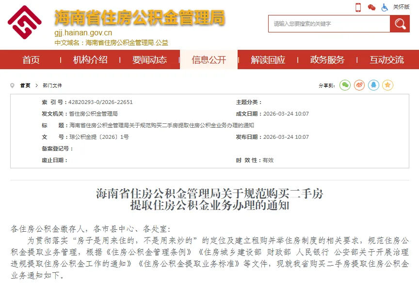 在海南买二手房提住房公积金,核心就3个关键点: