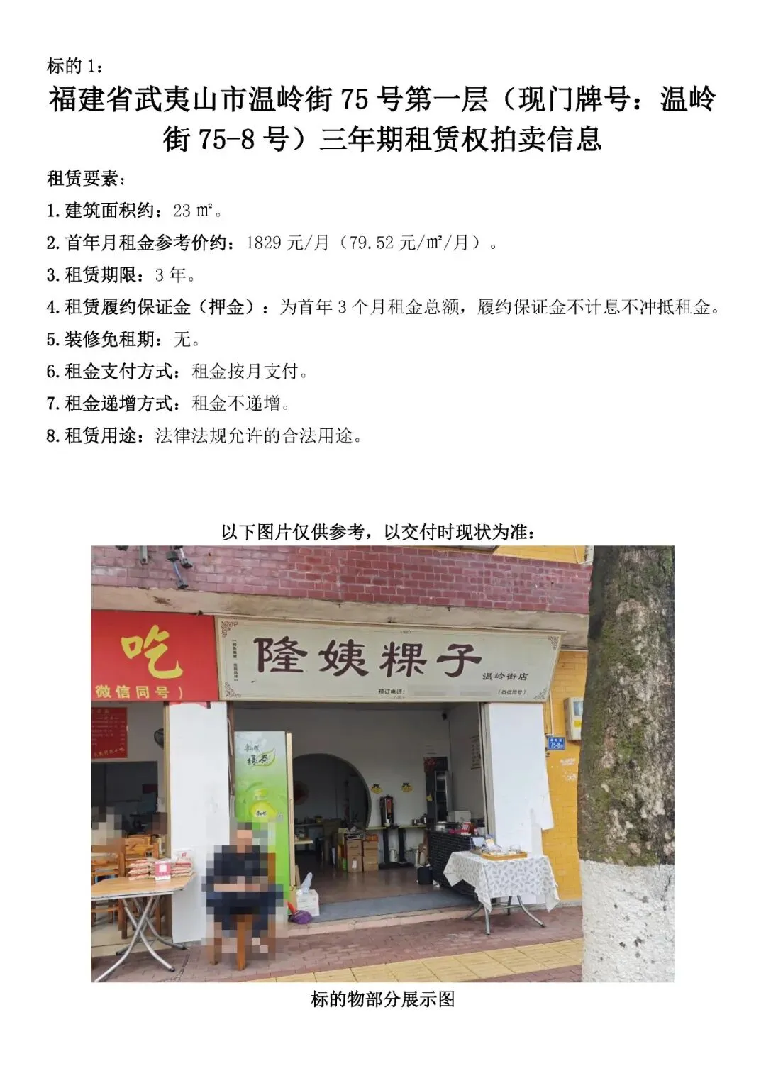 1.福建省武夷山市温岭街75号第一层(现门牌号:温岭街75-8号)三年期租赁权(出租建筑面积约23㎡)。