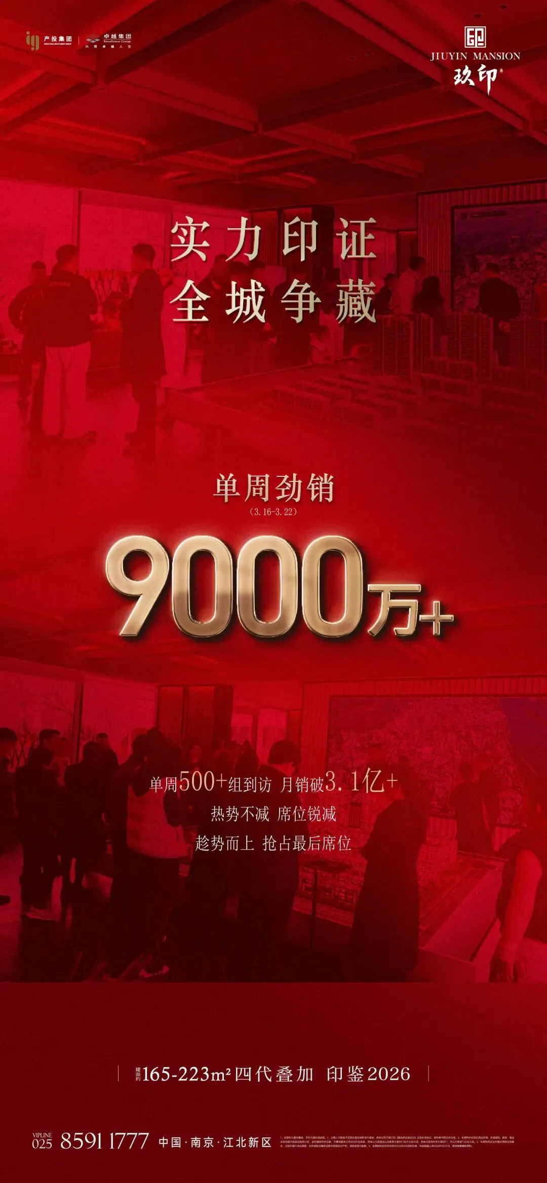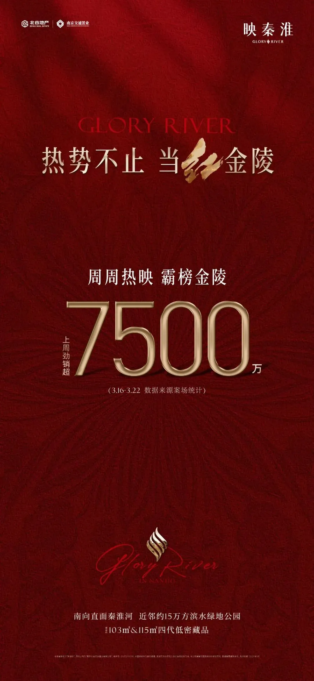 南京新房认购264套、成交302套;二手房成交460套,新房+二手房累计达到了1026套!南京新房狂卖超400套,周六二手房卖了近200套... ...河西中最新的顶豪代表瑞玺RICI发布成交喜报,上周(3月16日-3月22日)成交金额突破1.1亿元!此外,最新案场数据显示,项目建面约200㎡的“四代先锋平墅”产品,成交单价已突破7.1万元/㎡。河西中丹荔云府,3月单周劲销5000万元,持续热销中。3月第一周项目直接爆单,主城签约金额TOP1,成交超1亿元!截至目前,3月刚过半的销售额已超1.5亿元,千万级大平层是绝对主力,持续热销领跑。3月以来一路狂飙,20天狂卖80套房,热销3.2亿;此外,现场访客流量满溢,售楼处看房甚至要排队等位,且连续三周排队如潮,被央视认证“现象级红盘”。南站板块改善红盘映秦淮为了响应新政号召,助力改善置业,针对以旧换新客户,还额外给予4万元贴息补贴。项目发布数据(3月16日-3月22日),上周狂销7500万元!扬子保利·江韵瑧悦2号楼开盘,周末狂销超36套,持续领跑江核热势,建面约148㎡竖厅洋房收官加推,启动认筹,仅16套。玖印府3月16日-3月22日,单周劲销9000万+,月销突破3.1亿,500+到访。河西这些二手房涨价成交.....
