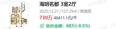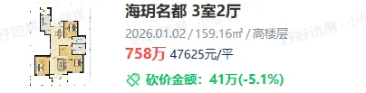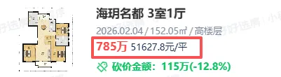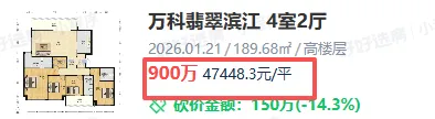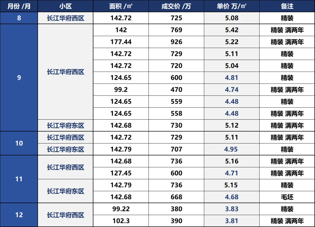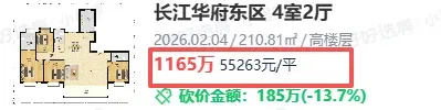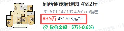 其中河西中、河西南等热点板块部分楼盘二手房价有所回调——河西中—长江华府:1165万成交,今年二手房总价最高价!每年3、4月份,都是学区房爆发式成交的时候,河西中长江华府作为科睿小学+金陵汇文双学区,且为改善次新房,今年2月小区最新成交一套210.81㎡大平层,成交总价1165万,单价约5.53万/㎡!值得关注的是,这是小区近半年以来最高成交单价及总价!据不完全统计,2025年8-12月共成交了18套房源,成交户型为99.22-177.44㎡,成交总价380-926万,成交单价3.81-5.42万/㎡。这样一看,单价约5.53万/㎡成交确实一举突破半年来最高价。近期,海玥名都成交一套152.06㎡的三房房源,总价785万,成交价51627元/㎡,是近半年来该小区成交价最高记录,单价重回5万/㎡+!2025年12月,小区成交一套157.29㎡,成交总价730万,单价约4.64万/㎡;2026年1月,小区成交一套159.16㎡,成交总价758万,单价约4.76万/㎡。小区自去年底以来,该户型接连成交,成交单价一路上涨,一举重回5万/㎡!据成交数据显示,2月河西中华润悦府成交了一套242.26㎡大平层,成交总价1000万,单价约4.13万/㎡,一举突破小区自去年8月以来最高成交价!值得关注的是,小区上次成交单价在4万/㎡以上还是去年5月,成交户型同样为247.13㎡大平层,成交总价1141万,单价约4.62万/㎡!据成交数据显示,河西南万科翡翠滨江成交了一套189.68㎡大平层户型,成交总价900万,单价4.74万/㎡!值得关注的是:今年1-2月小区成交共成交了5套,成交户型143-231.98㎡,成交总价608-1068万,成交单价约4.25-4.74万/㎡,小区成交价稳居4万/㎡+!同板块次新房河西金茂府璟园,2026年1-2月共成交了2套房源,成交单价均在4万/㎡以上;