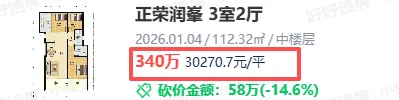 自去年以来,河西老牌星八客成交单价一度跌到了3万/㎡以下,甚至部分房源不到2万/㎡成交。今年最新成交价显示,正荣润峯、佳兆业城市广场等小区,突破3万/㎡。正荣润峯,今年1月成交一套112.32㎡三房,成交总价340万,单价约3.03万/㎡。去年12月底,小区同样成交一套112.32㎡,成交总价311.9万,单价约2.78万。如今一个月时间,相同户型总价上涨了约28万,单价约2500元/㎡。佳兆业城市广场三期,今年1月共成交了6套房源,其中有2套成交单价在3万/㎡以上!其中最高成交为86.2㎡三房,成交总价266万,单价约3.09万/㎡。此外,正荣滨江紫阙去年11月一度跌到3.2万/㎡,今年以来成交也是攀升至3.6万/㎡左右成交。PS:想了解更多河西房价变化的,可以扫码进群,如果有其他买房/卖房问题的,大家有需要可以找我私聊~👇👇