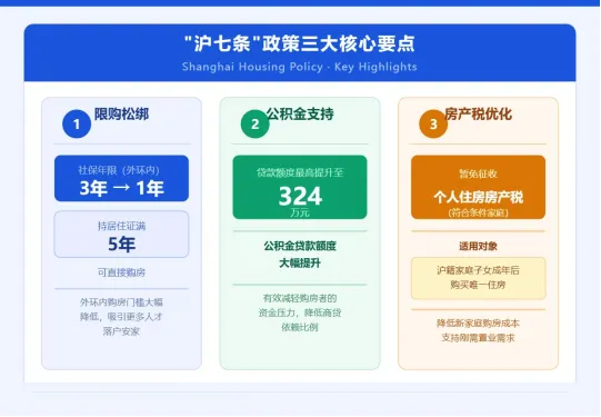 新政将非沪籍居民购买外环内住房的社保年限从3年大幅缩短至1年,持居住证满5年无需社保即可购房。同时,公积金贷款额度从最高160万元提高到324万元。这些措施直接释放了大量被高门槛拦在门外的购房需求。